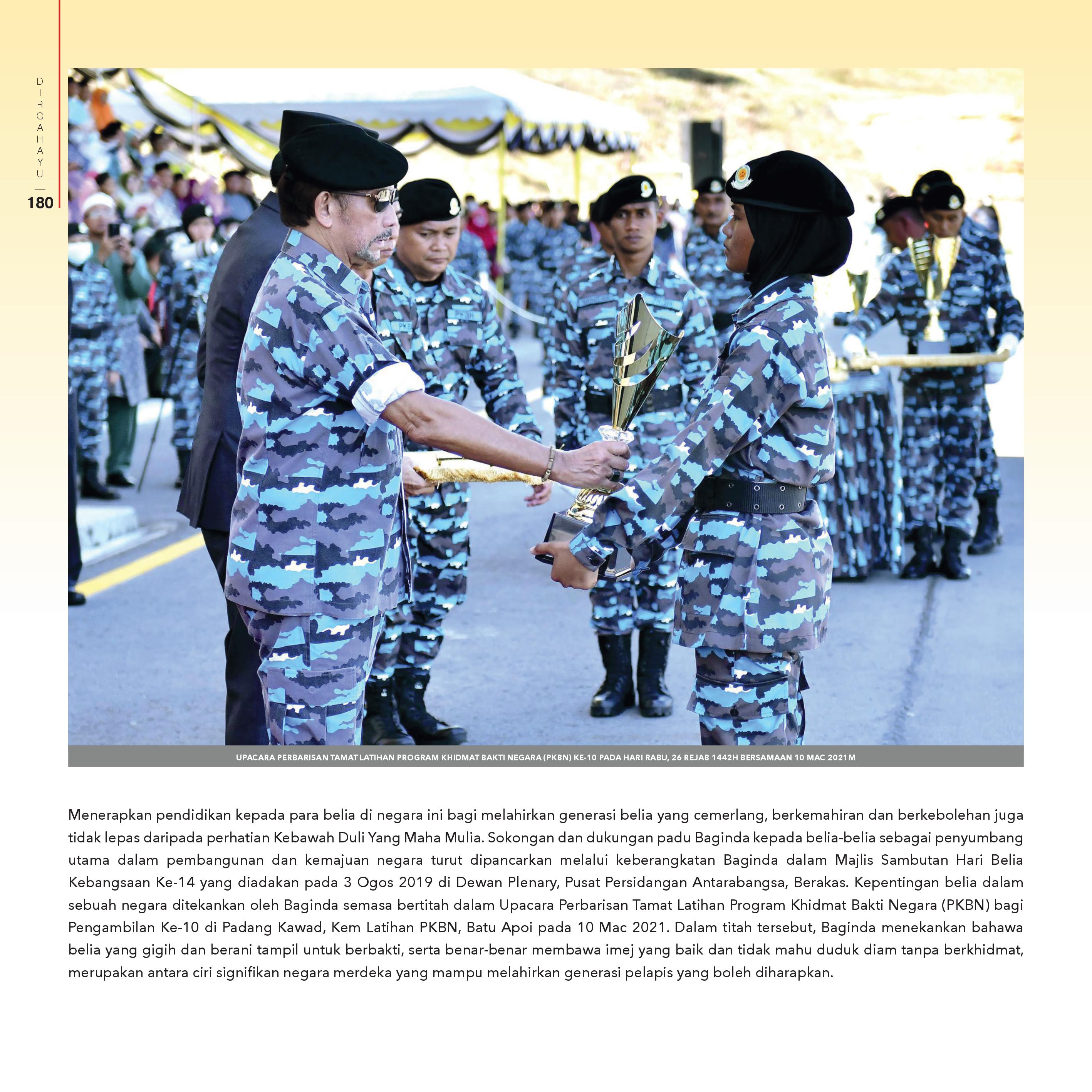 Pengambilan Ke-10 di Padang Kawad, Kem Latihan PKBN, Batu Apoi pada 10 Mac 2021. Dalam titah tersebut, Baginda menekankan bahawa