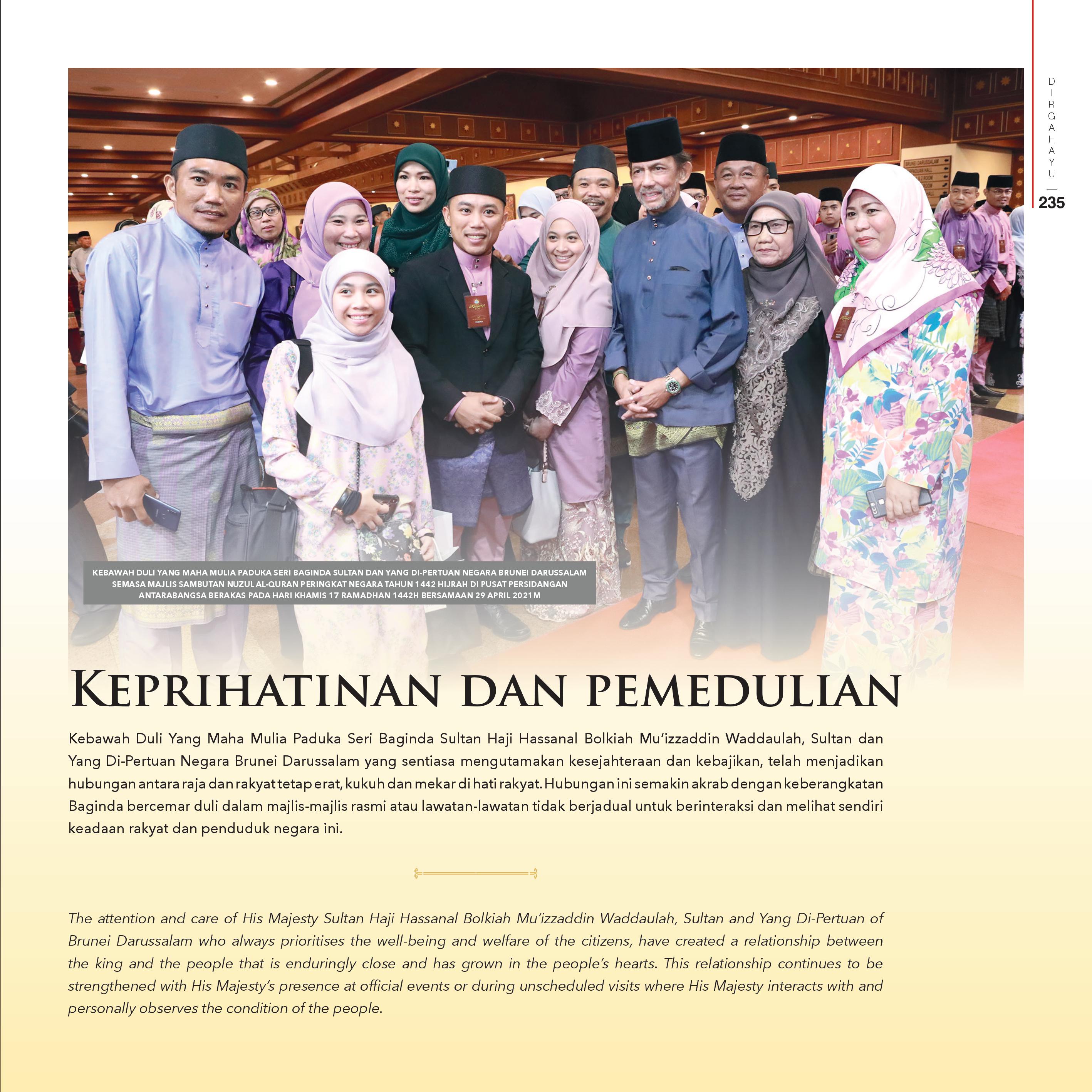 Yang Di-Pertuan Negara Brunei Darussalam yang sentiasa mengutamakan kesejahteraan dan kebajikan, telah menjadikan